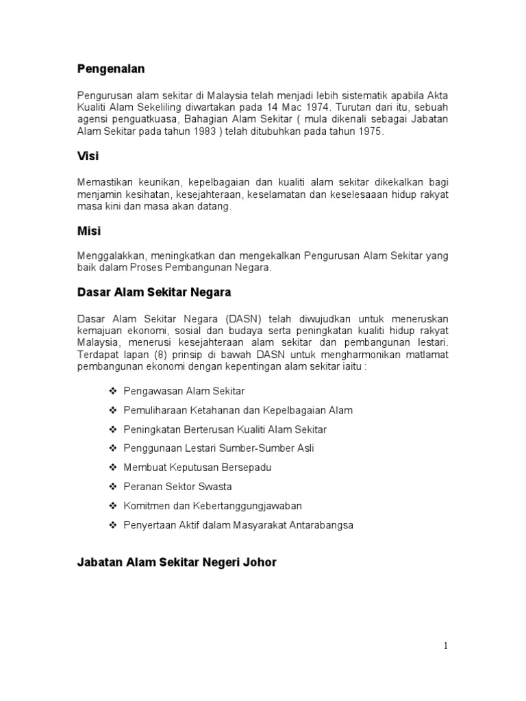Laporan Lawatan Ke Jabatan Alam Sekitar Melaka from demo.pdfslide.tips Alam sekitar memainkan peranan penting dalam kehidupan harian kita.alam sekitar yang tidak tercemar memberikan kita satu suasana yang selesa dan menyamankan.di samping itu ia memberi keselesaan kepada manusia,ia juga sedikit sebanyak akan menjejeskan. Menguatkuasakan akta kualiti alam sekitar dan zon ekonomi ekslusif. Memelihara kepelbagaian spesies dan ekosistem. Peranan jabatan alam sekitar (jas): Bahan lunak alami adalah bahan lunak yang diperoleh dari alam dan diolah secara alami tanpa campuran atau kombinasi dengan bahan buatan lainnya. Drilling n n n concerns: Memelihara dan menyimpan daftar tanah yang kemaskini. 25, persiaran perdana, presint 4 (5,619.03 mi) putrajaya, malaysia, 62100.
