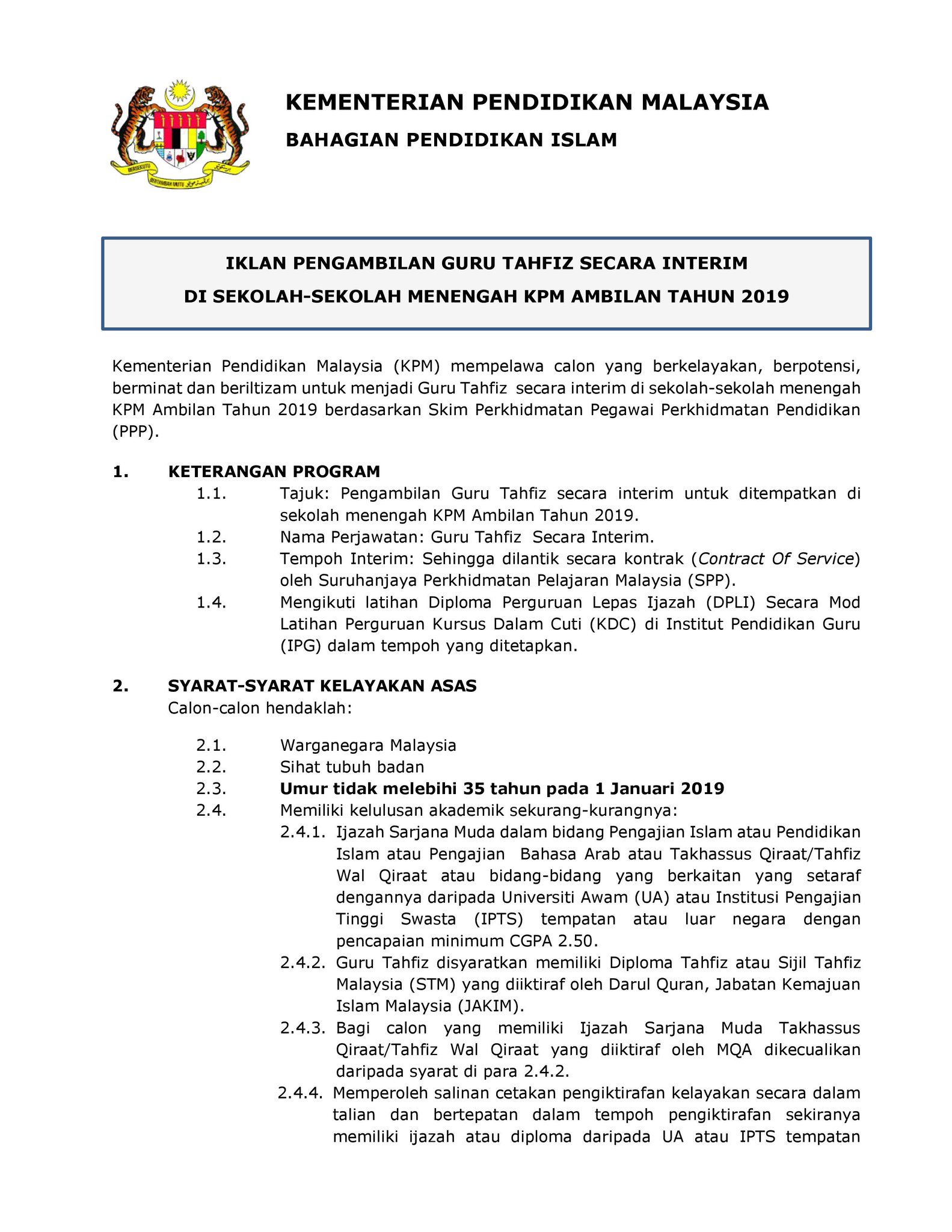 Jawatan kosong terkini yang diiklankan adalah seperti berikut: